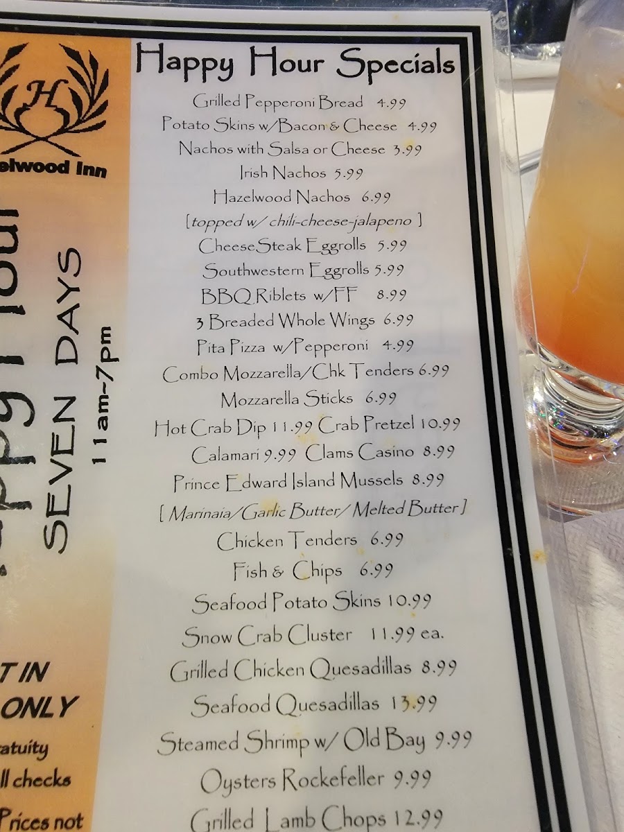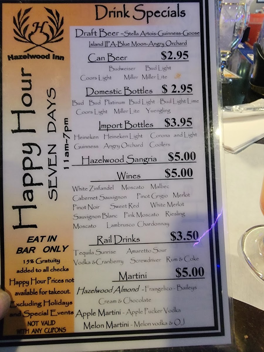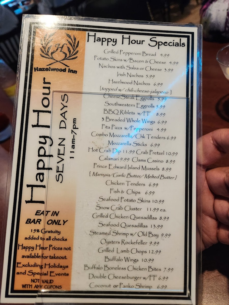 Hazelwood Inn Menu