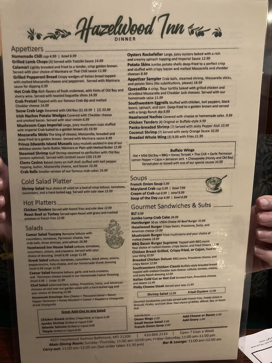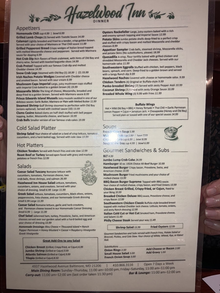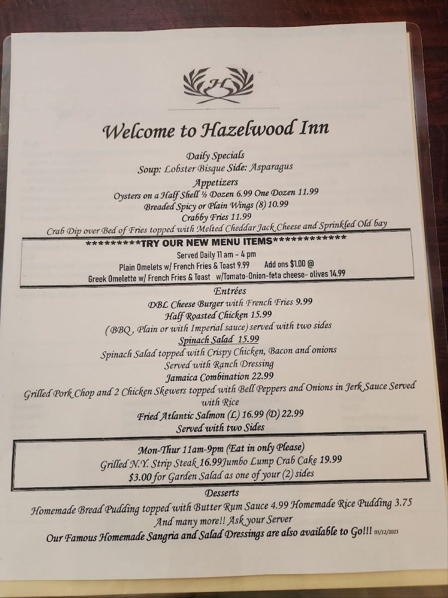 Hazelwood Inn Menu